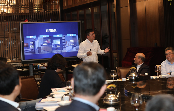 参观中,一台嵌入在茶几平面的创维智能人居显示屏引起了企业家们的浓厚兴趣。通过这个显示屏,不仅能语音调节窗帘和空调温度,而且可以下象棋,听人民日报语音播报新闻。而在另一台高清OLED大屏前,其人机交互功能,几乎实现了把健身教练请进家里的效果,即便订机票也能在大屏上完成。因此,黄宏生认为,相比手机的私域空间,未来在公共空间,世界一定是“屏”的,最贵的就是流量。