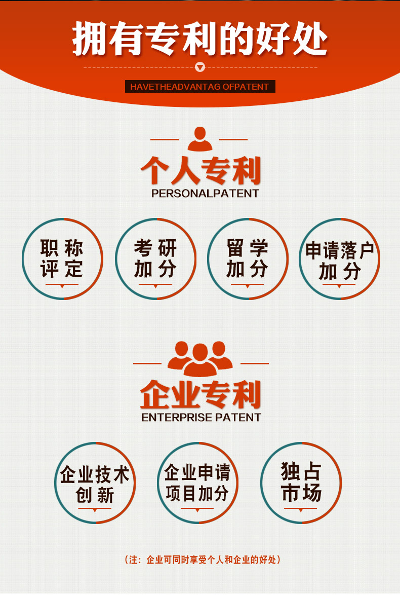 专利申请指南专利申请是知识产权行业重要 项目之一,中国知识产权专利申请量每年也都在递增,国家大力支持鼓励国内发明专利申请,实用新型专利申请和外观设计专利申请这三种专利,并且对发明创新的专利申请给与相对应的补贴,另外一个方面,专利申请的一个量也是企业在后期申请政府资金扶持的一个考核标准。在中国,发明创造目前包括三种类型,分别是:发明、实用新型和外观设计。在申请阶段,分别称之为发明专利申请、实用新型专利申请和外观设计专利申请。获得授权之后,分别称之为发明专利、实用新型专利和外观设计专利,此时,申请人就是相应专利的专利权人。1、发明专利申请。下证时间:(1年半-2年)针对产品、方法或者产品、方法的改进所提出的新的技术方案,可以申请发明专利;2、实用新型专利申请。下证时间:(6-8个月) 针对产品的形状、构造或者其结合所提出的适于实用的新的技术方案,可以申请实用新型专利;3、外观专利申请。下证时间:(4-6个月) 针对产品的形状、图案或者其结合以及色彩与形状、图案的结合所作出的富有美感并适于工业应用的新设计,可以申请外观设计专利;专利申请有什么好处?1、专利作为一种无形资产,具有巨大的商业价值,是提升企业竞争力的重要手段。2、企业将科研成果申请专利,是企业实施专利战略的基础。3、专利的质量与数量是企业创新能力和核心竞争能力的体现,是企业在该行业身份及地位的象征。4、企业通过应用专利制度可以获得长期的利益回报。5、企业拥有专利是申报高新技术企业、创新基金、科技计划、政府补贴、项目申报的必要前提条件。专利保护期限是多长时间?专利保护期限是以提交专利的申请日开始计算的,其中发明专利保护期限是20年,实用新型专利和外观设计专利保护期限是10年。