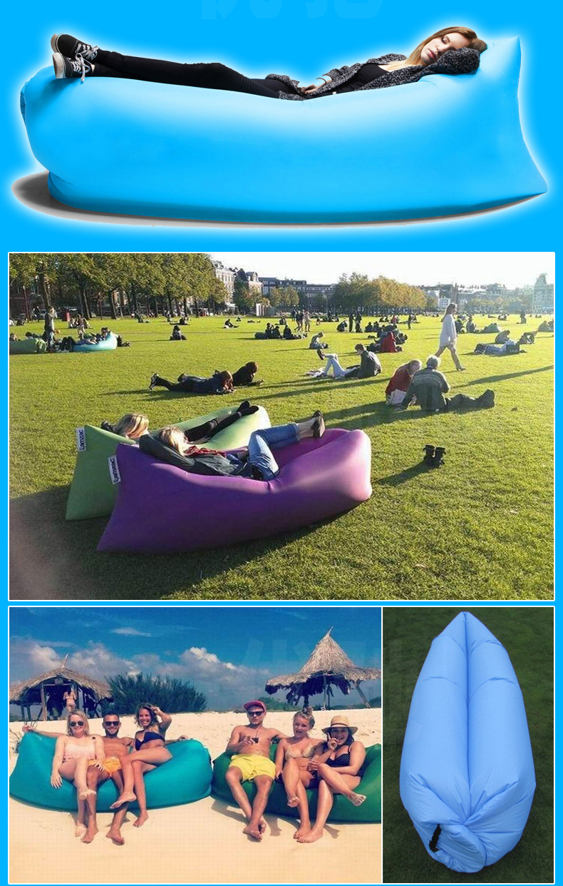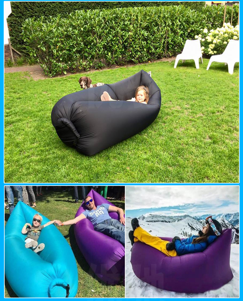 带口袋便携式充气户外懒人沙发 单人空气沙发床沙滩懒人睡袋尼龙