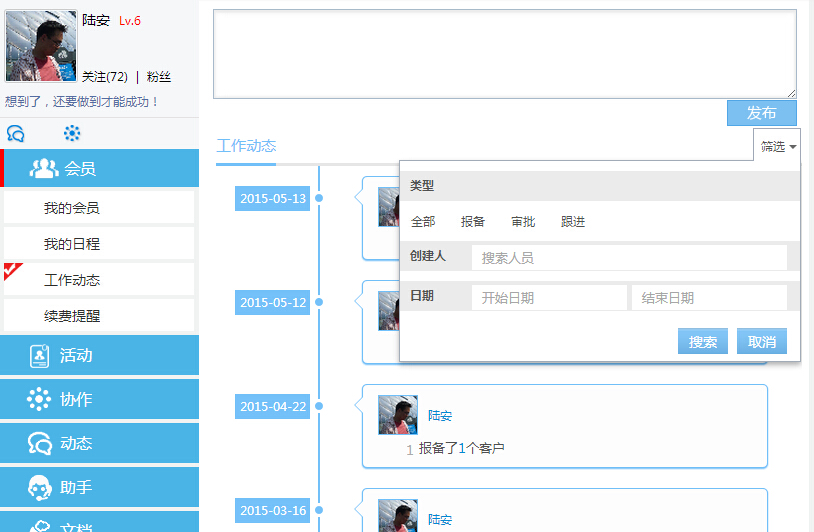 4、活动:记录你参与的活动,同时可以在线报名参加企业组织的各项活动