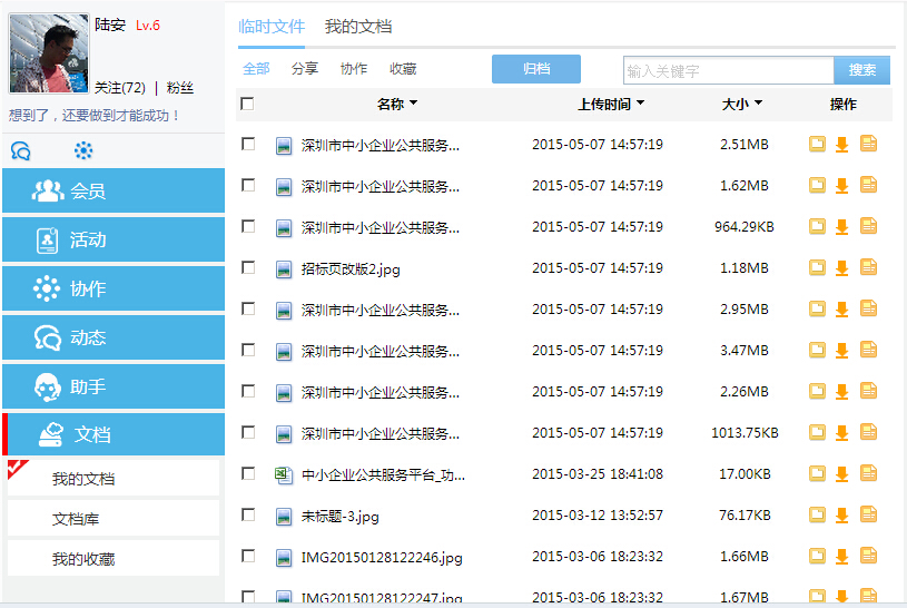 7、文档:可以将工作文档自动保存和归类归档,查询相关工作文档