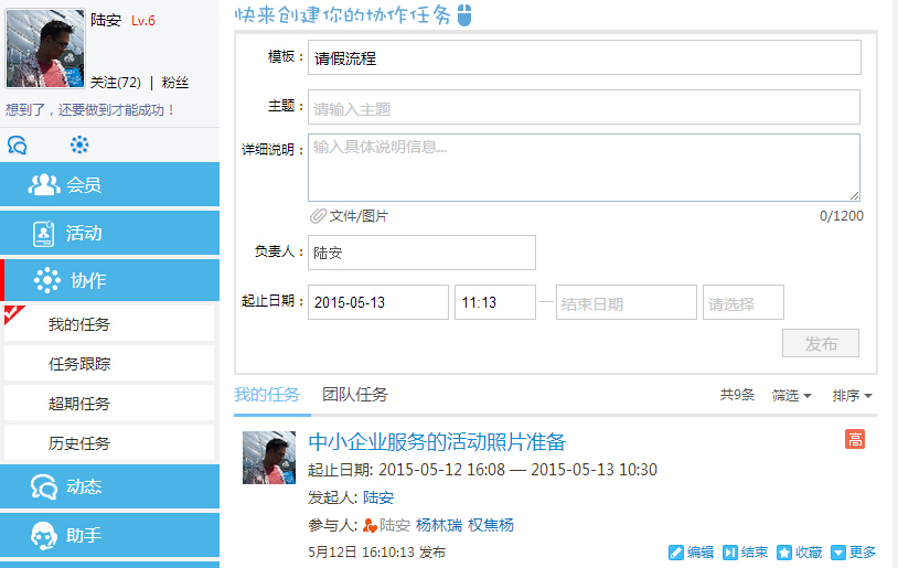 5、协作:可以自定义工作流程,如报销、请假、请示、呈报等OA流程